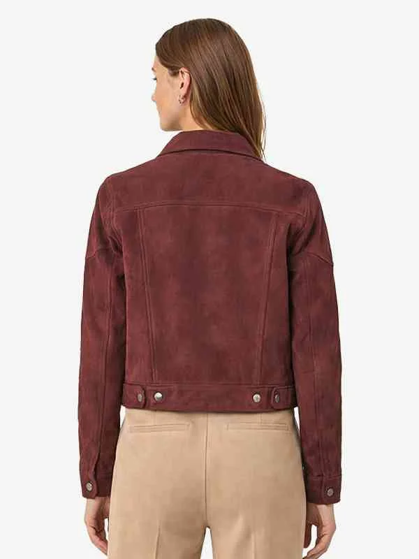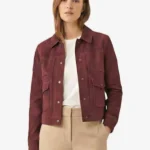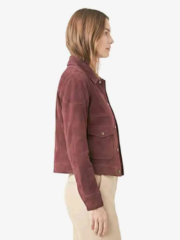 Hannah Baker TV Series 13 Reasons Why Katherine Langford Maroon Suede Jacket