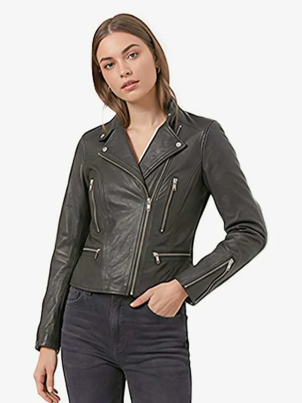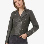 Its latest top layer is crafted from premium quality leather, which offers a sleek, durable, and stylish finishing into your wardrobe staple. The inner viscose lining of this clothing item provides comfort and breathability, allowing you to wear it all day long. The front zipper closure gives it a modern and sporty look, while the snap tab collar of this elegant attire adds a sharp and edgy appearance to every fashionista’s wardrobe.